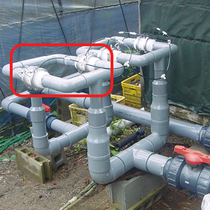 養殖設備の配管に取り付け